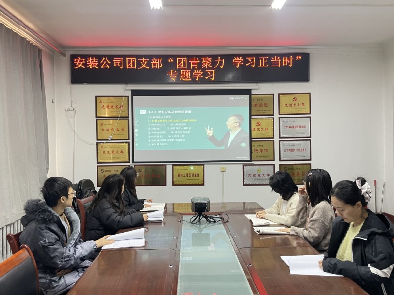 2月18日,安裝公司團支部開展“團青聚力 學習正當時”專題學習活動,此次活動旨在幫助團員青年扎實掌握專業(yè)知識,為今后的工作奠定堅實基礎(chǔ),通過學習《建設(shè)工程項目管理》中的“材料設(shè)備采購合同管理”內(nèi)容,大家認識到要始終保持終身學習的理念,使知識和本領(lǐng)與承擔的工作相適應(yīng),為企業(yè)發(fā)展注入強勁動能。