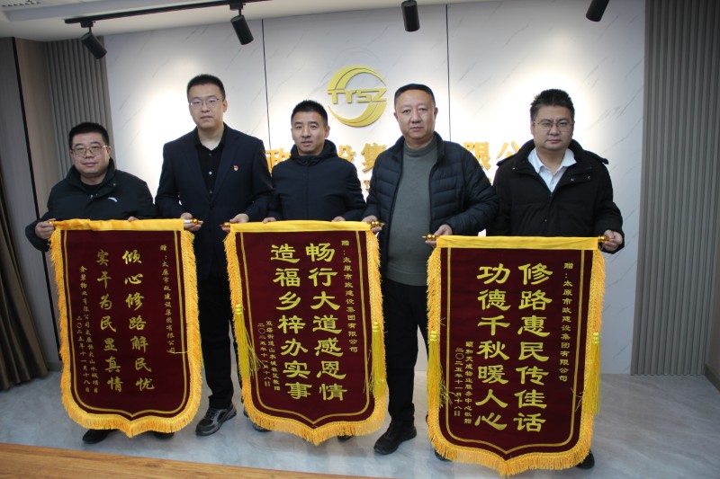 11月26日,太原市雙塔街道所轄社區(qū)、駐地單位向集團(tuán)公司送來錦旗,對集團(tuán)公司高質(zhì)量完成天成路建設(shè)工程,切實(shí)解決出行難,修筑“民生路”的務(wù)實(shí)舉措表示感謝。